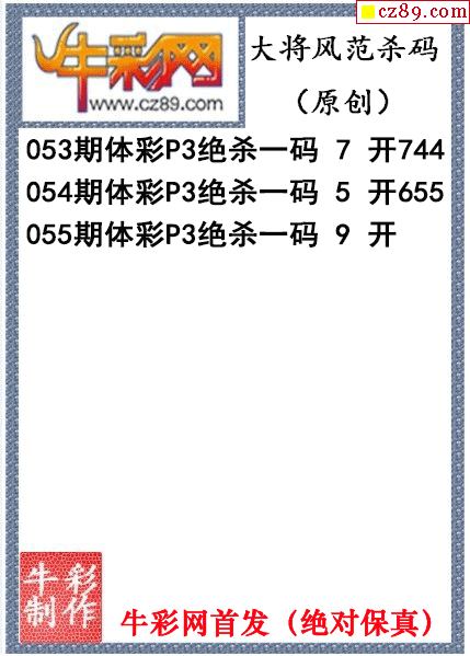 大将风范杀码055期体彩p3图谜(原创)