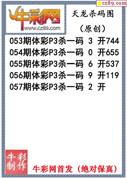 天龙杀码057期体彩P3图谜(原创)