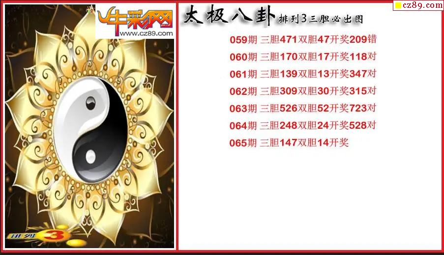 首页 > 排列3图谜 > 2026065期P3太极八卦三胆必出图