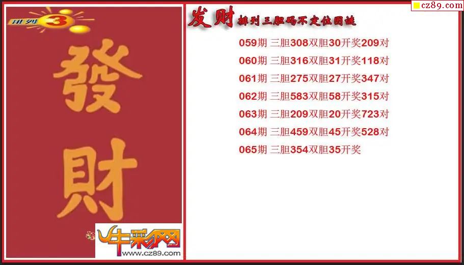 2026065期P3发财胆码不定位图谜