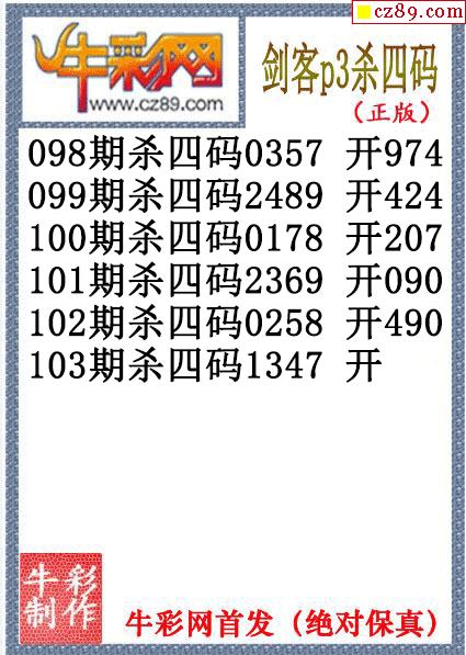 剑客杀码103期体彩P3图谜(原创)