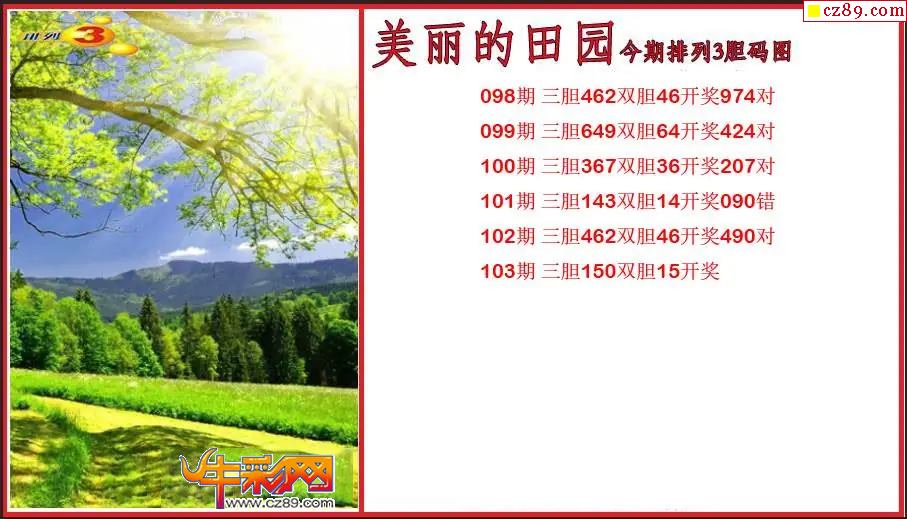 首页 > 排列3图谜 > 2026103期P3美丽的田园胆码图