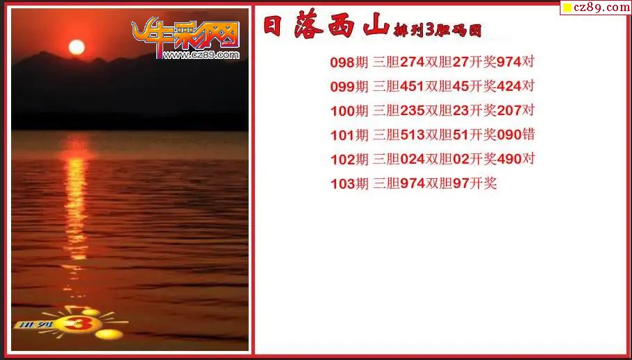 首页 > 排列3图谜 > 2026103期P3日落西山胆码图谜